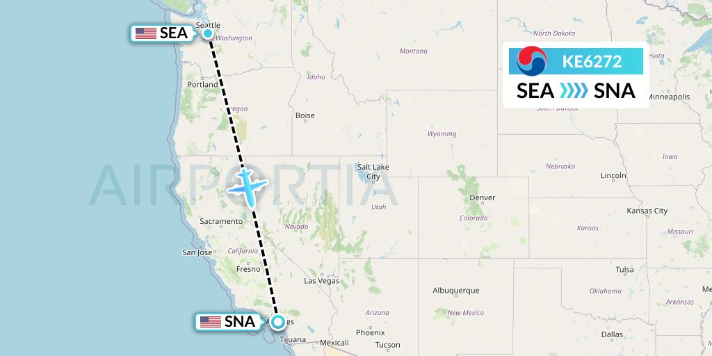 See also a map, estimated flight duration, carbon dioxide emissions and the time difference between seattle and santa ana.