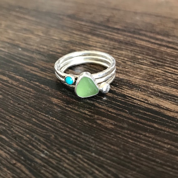 This vintage sea glass has been naturally tumbled and polished by the ocean over many, many years. Each sea glass gem has its own unique characteristics that can only be achieved through years upon years of being tumbled by the ocea. Blue sea glass triple band ring. A wide variety of sea glass rings options are available to you, such as jewelry main material, inlay technology, and gender.